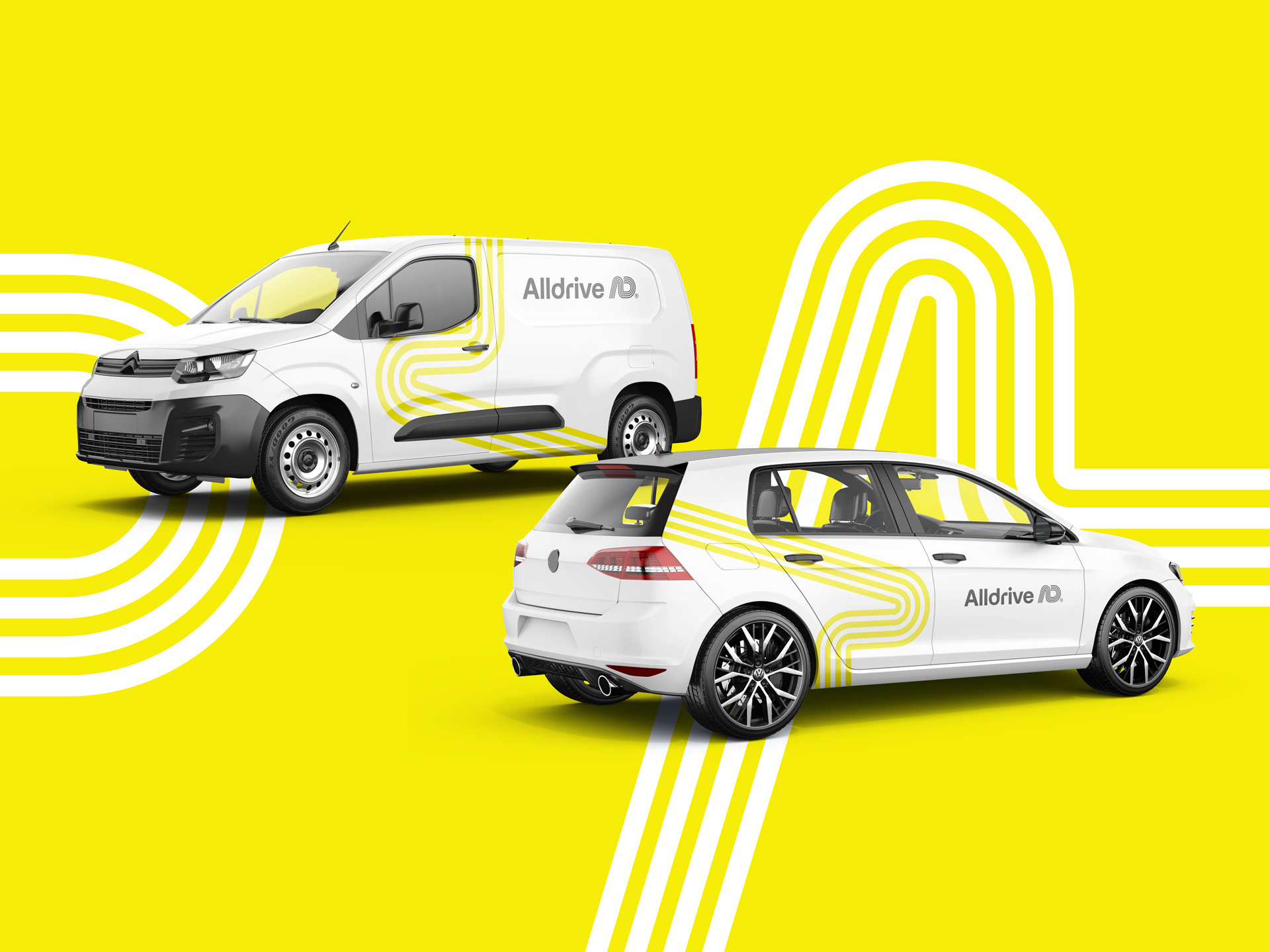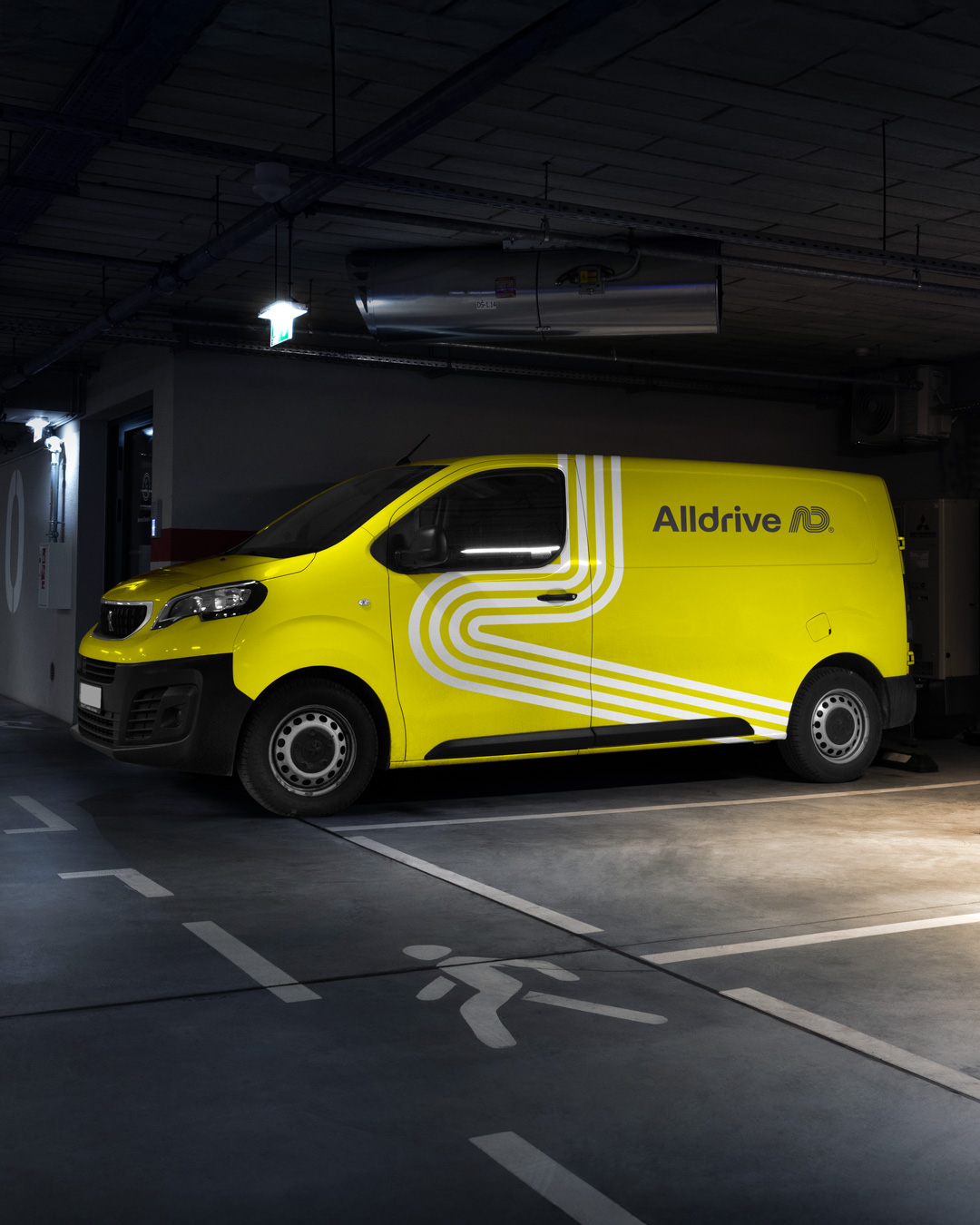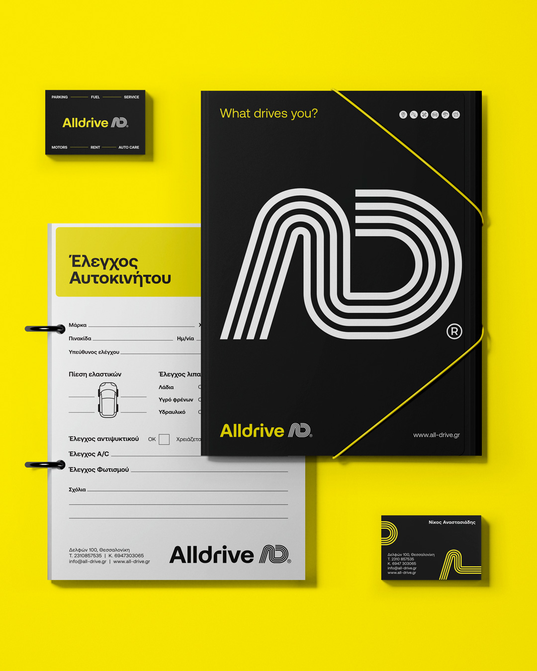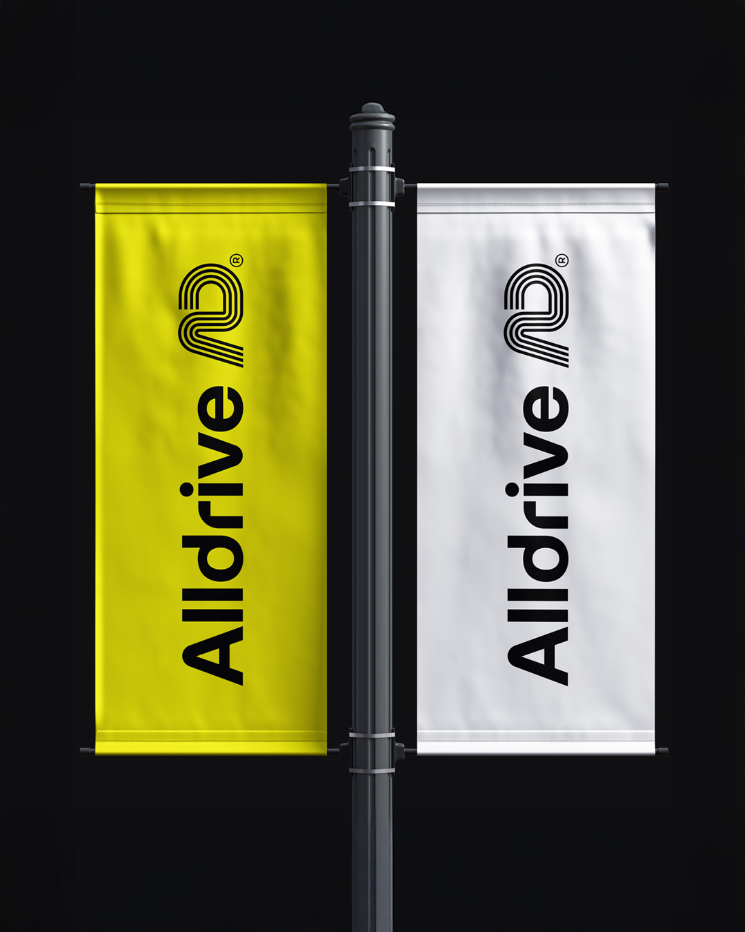 We translated that promise into a modern, confident, and fast-paced visual identity, built on motion and clarity: a sharp black-and-yellow contrast for impact and visibility, and a dynamic monogram where A meets D, tracing the curves and straights of the open road. Designed to stand out and stay memorable, we crafted an optical language that speaks of speed, reliability, and the freedom to go anywhere.