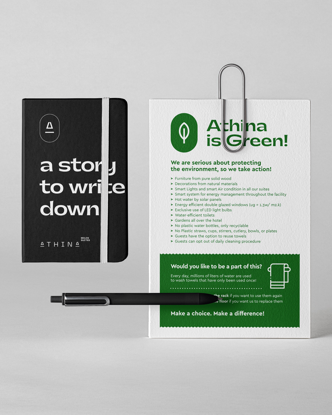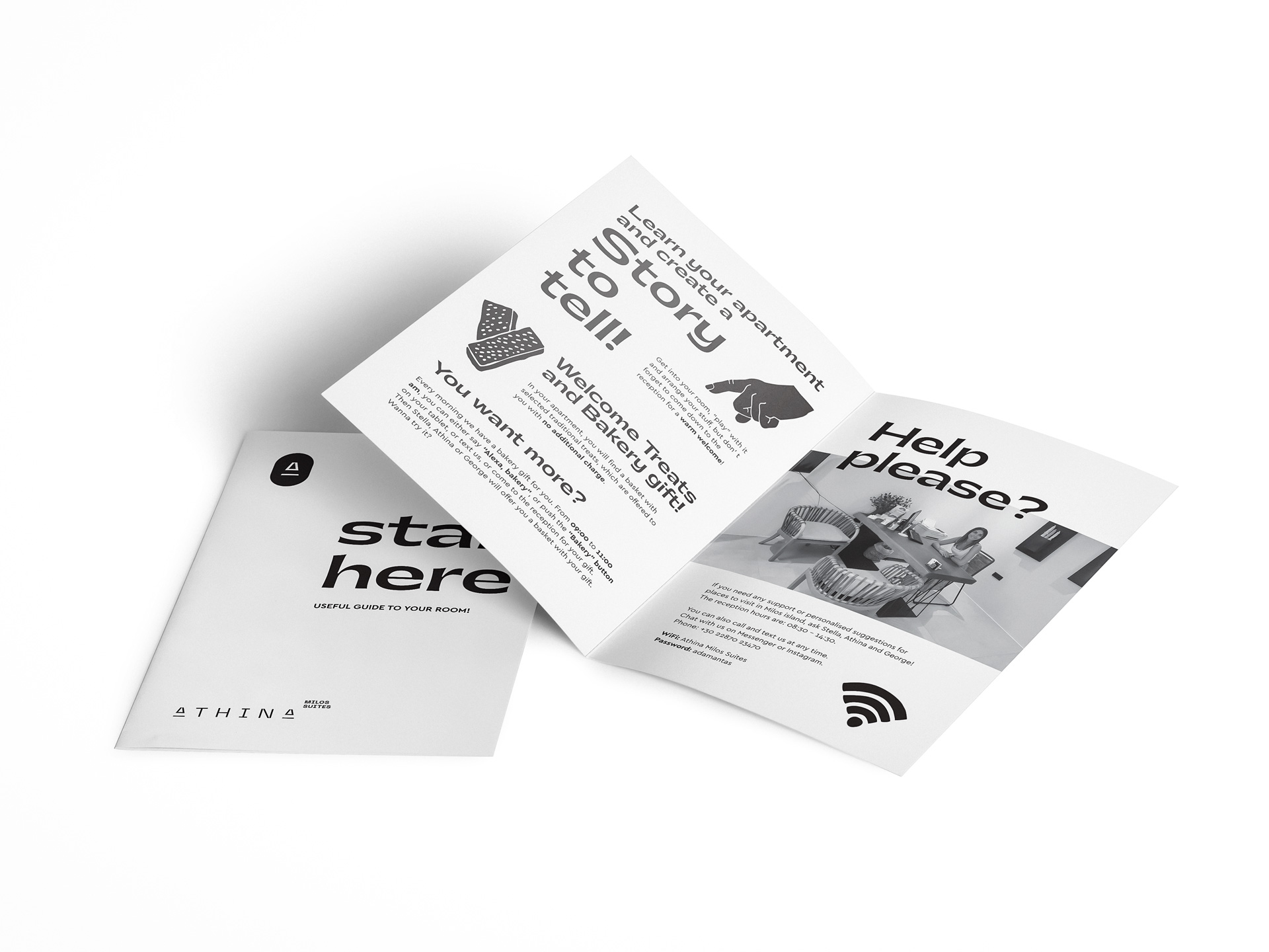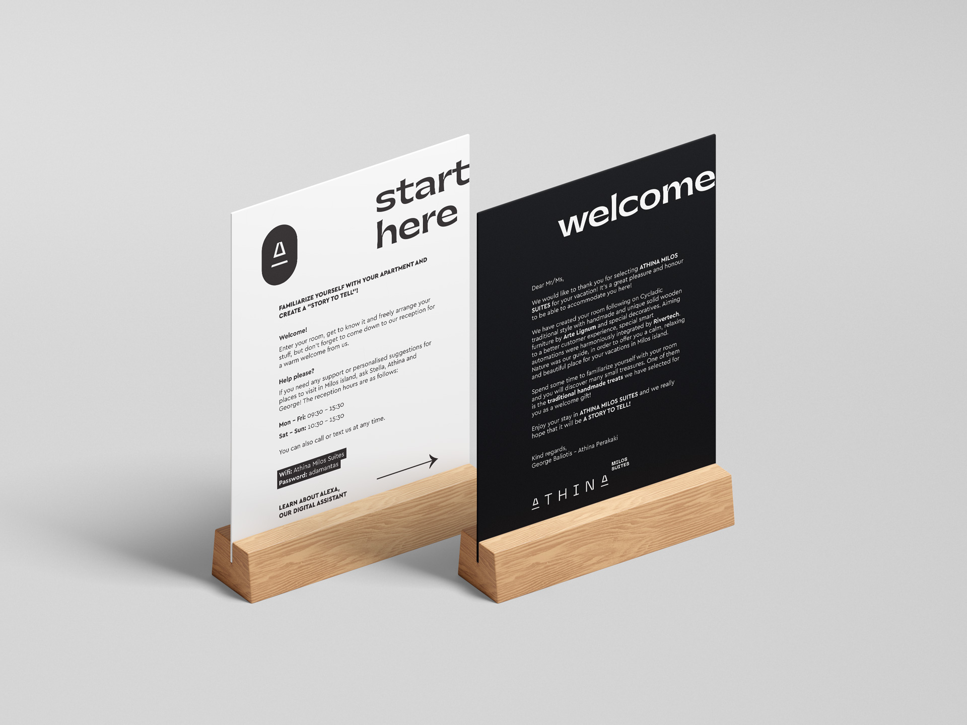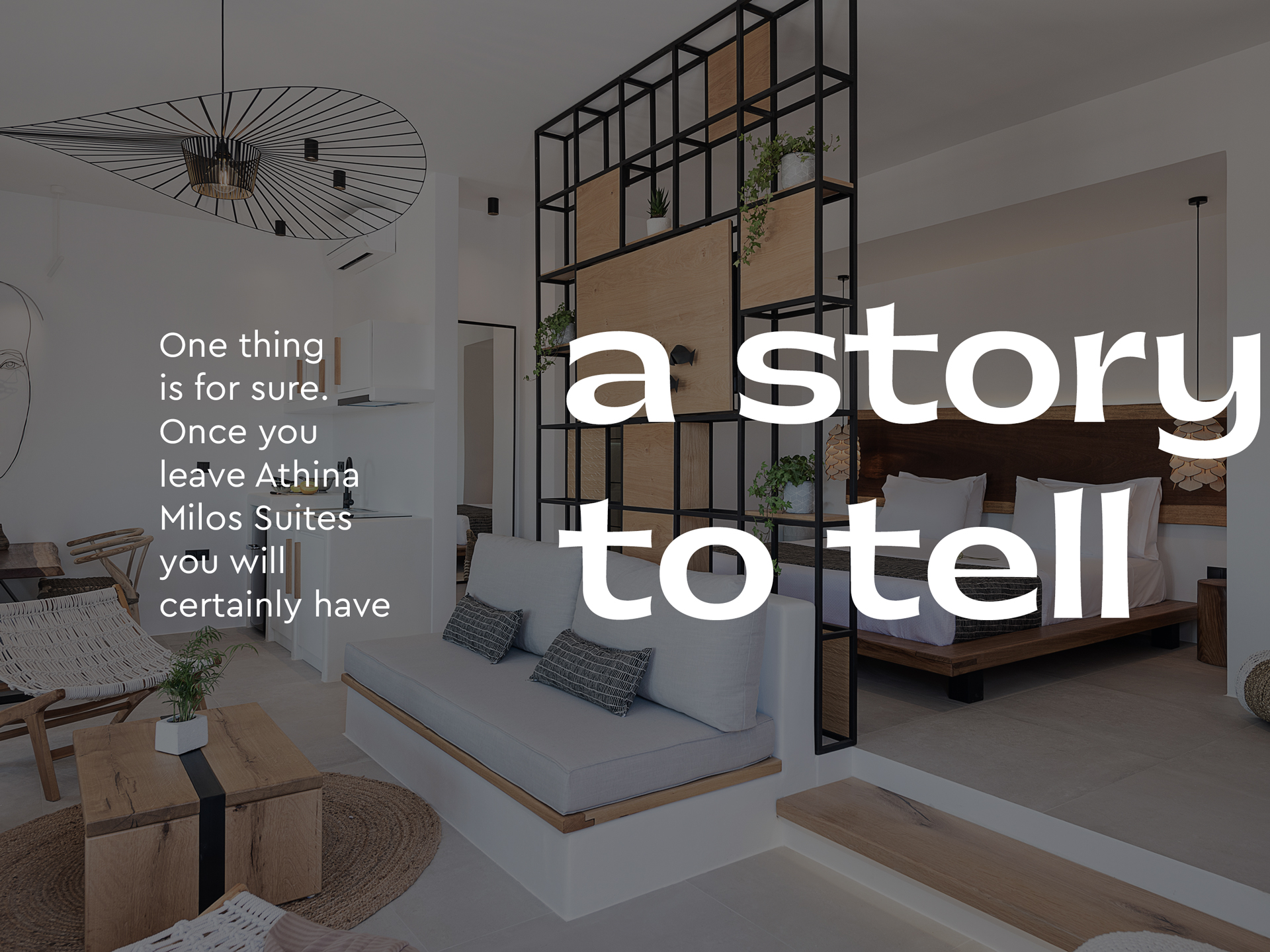 For Athiná Milos Suites, the goal was to design a visual language that not only blends with the island’s natural purity, but also clearly reflects the hotel’s unique balance of minimal lines, natural feel, and tech innovation. A brand identity that reflects the whole essence of living the experience – and creating a story to tell.
