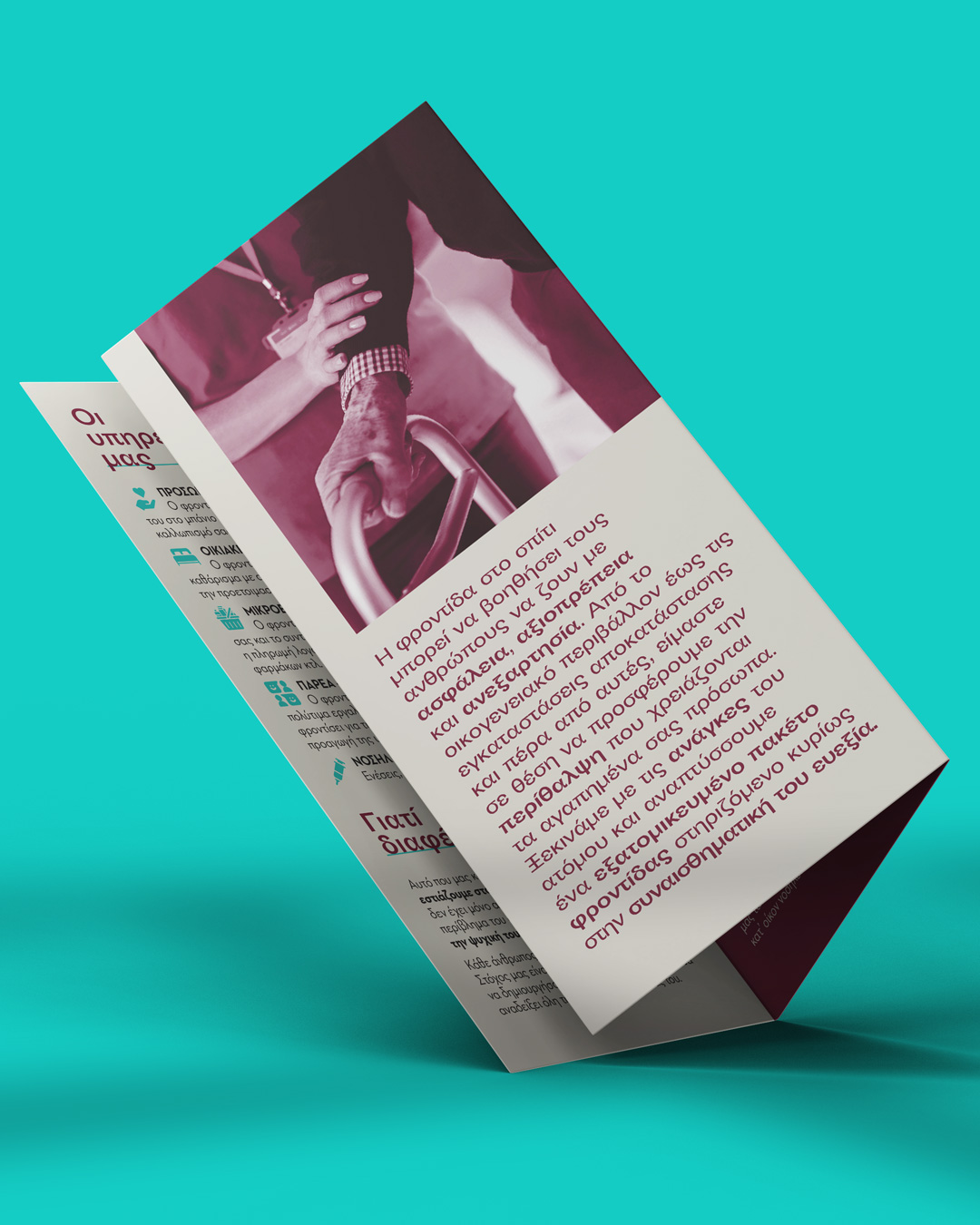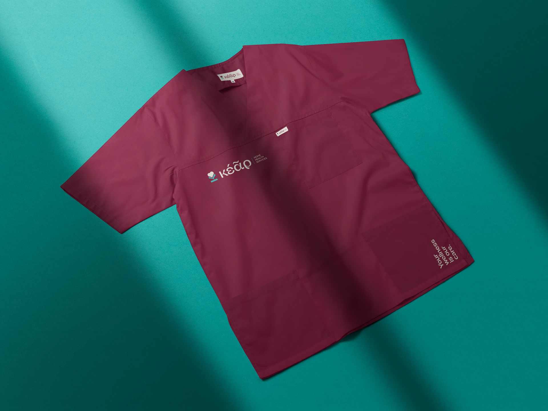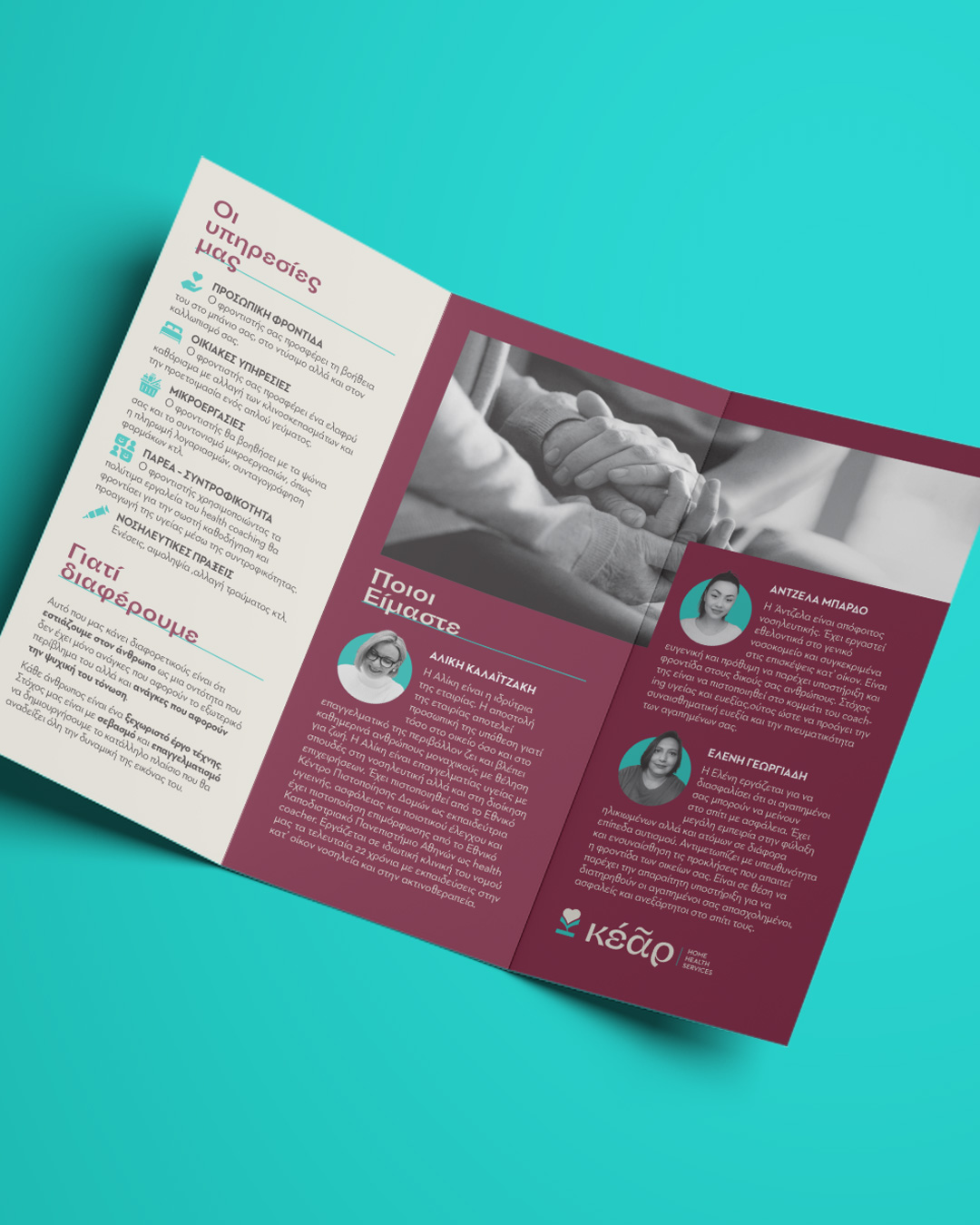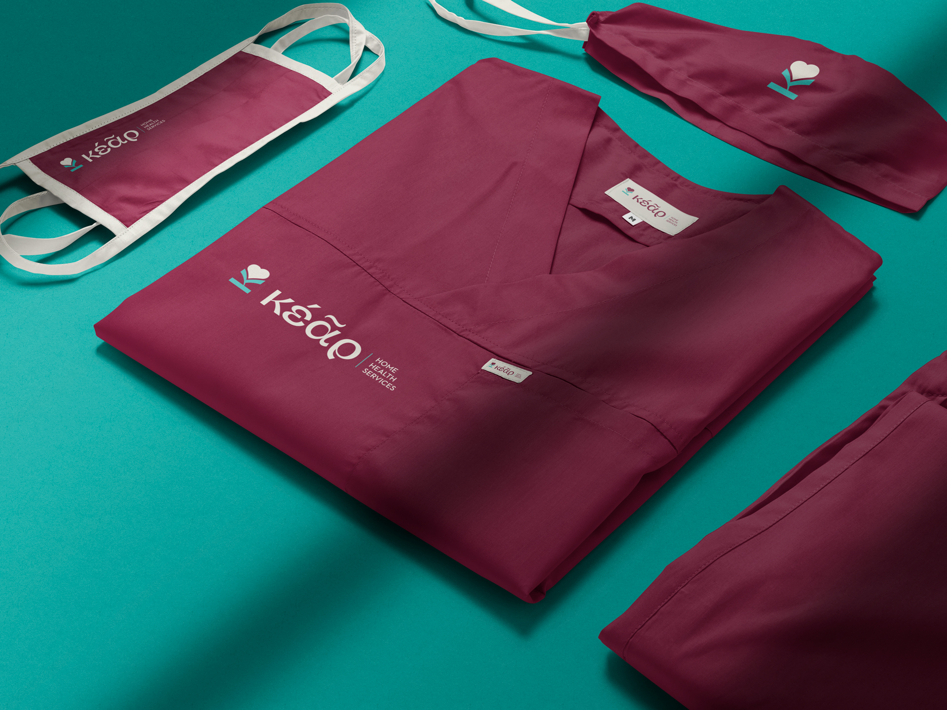 We designed the brand identity for KEAR, a home health service offering support and expert medical attention to elderly and people with disabilities. Inspired by the ancient Greek word kêr (heart) and echoing the sound of care, the name guided the entire concept.