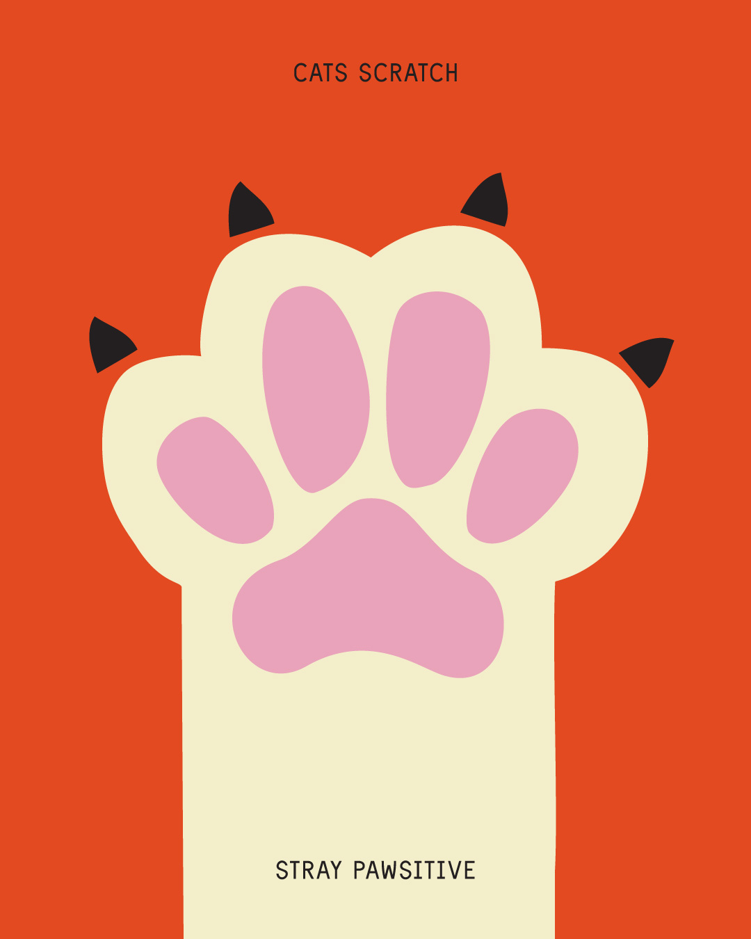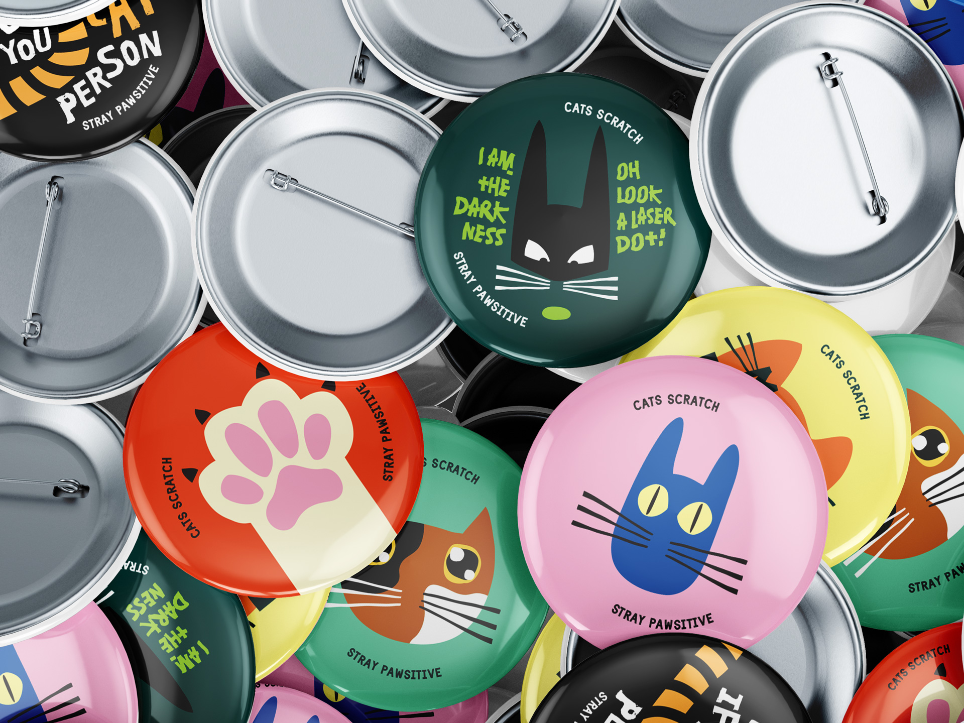 Meet one of our favorite projects! Cats Scratch and Stray Pawsitive teamed up, and assigned us to illustrate some special series of pins – created not just for cat lovers, but for a good cause. Playful, fun and vibrant, each concept celebrates the character, mystery and spirit of our little fellows, while helping raise funds for stray animals in need.