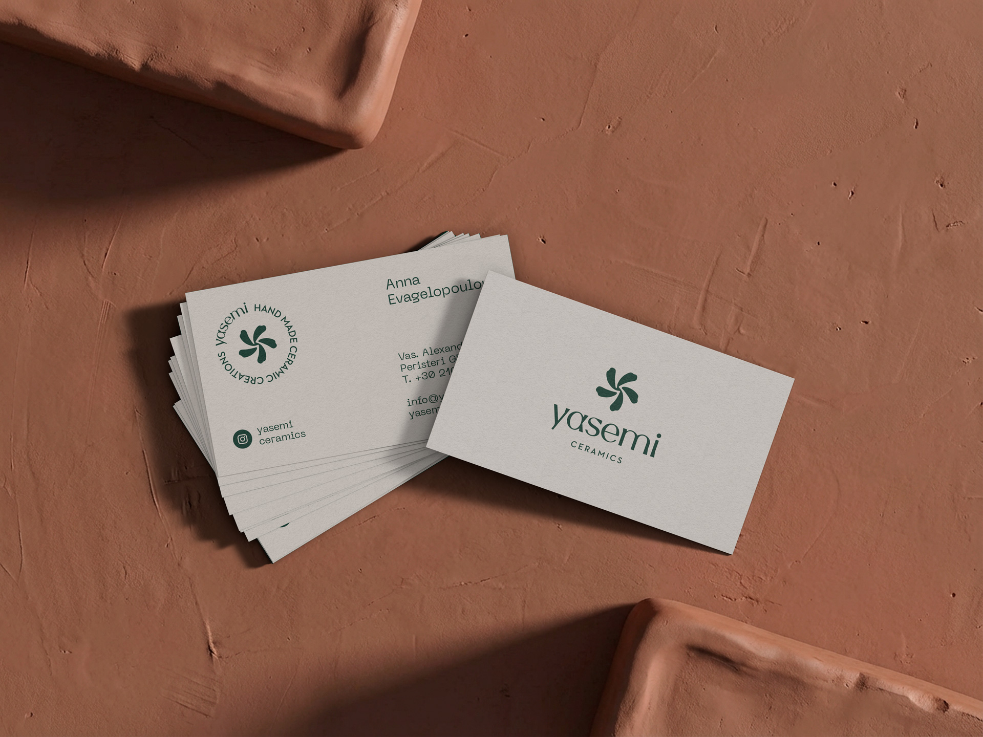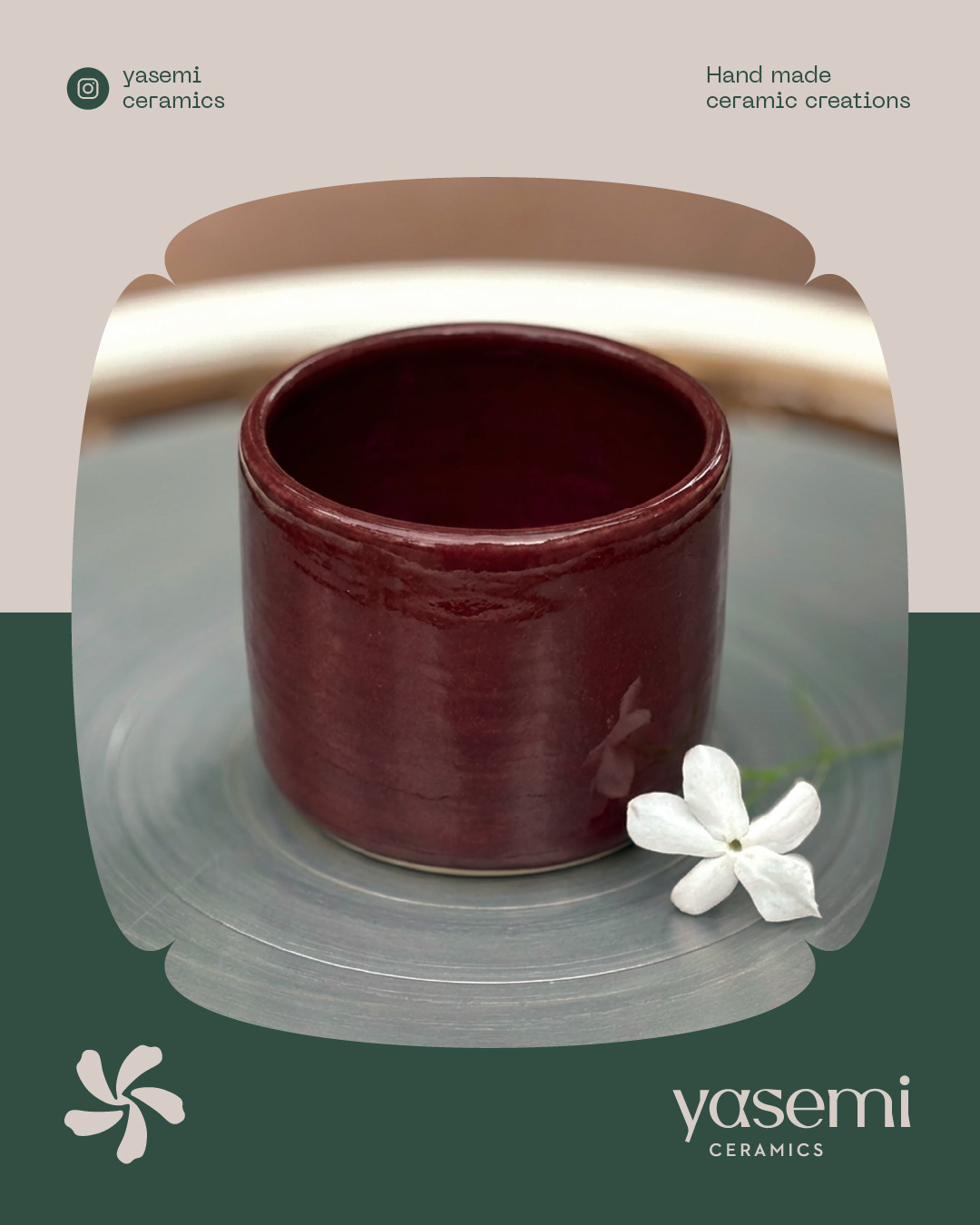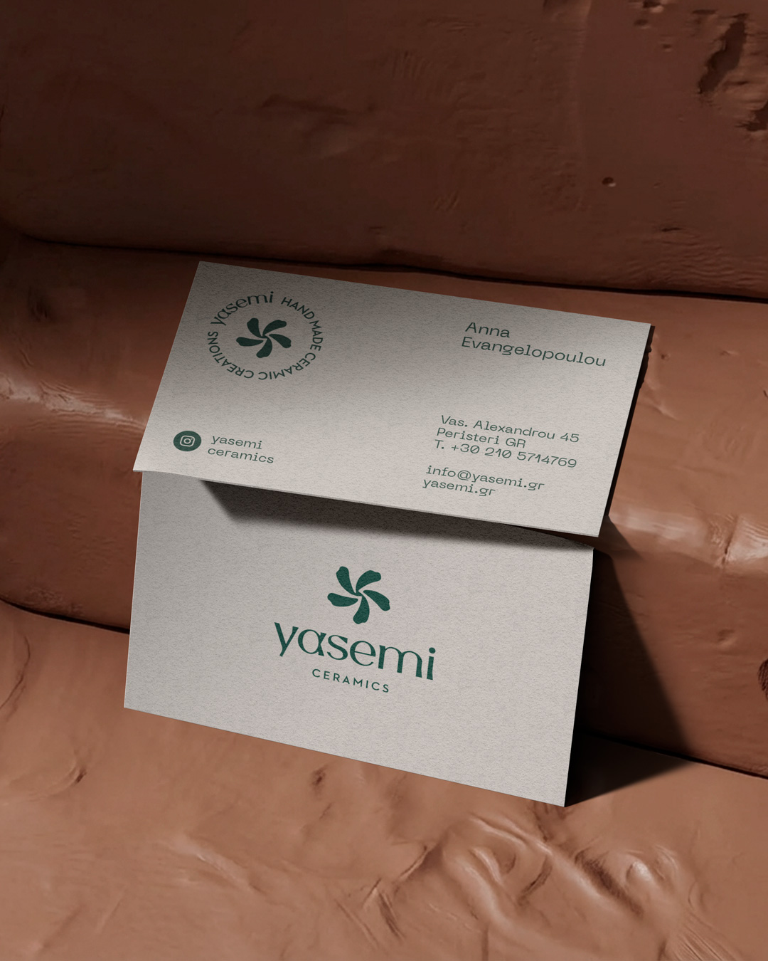 Yasemi (jasmine in greek), is a ceramic workshop tucked inside a small yard, filled with sentiment and the delicate scent of jasmines in the air. In Yasemi, every piece is made with care, style and quiet devotion. The identity captures the essence of authenticity, calmness and the simple joy of shaping clay by hand. Earthy tones, contemporary typography and a distinctive jasmine symbol come together to form a design system that reflects the warmth, honesty and human touch of true handmade craft.